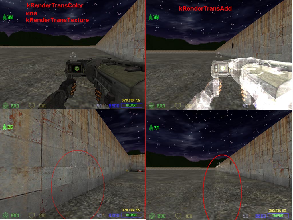 Ghoul [BB] писал: А если по сабжу, то обрати внимание на то, что некоторыех режимов rendermode на клиенте попросту нет.