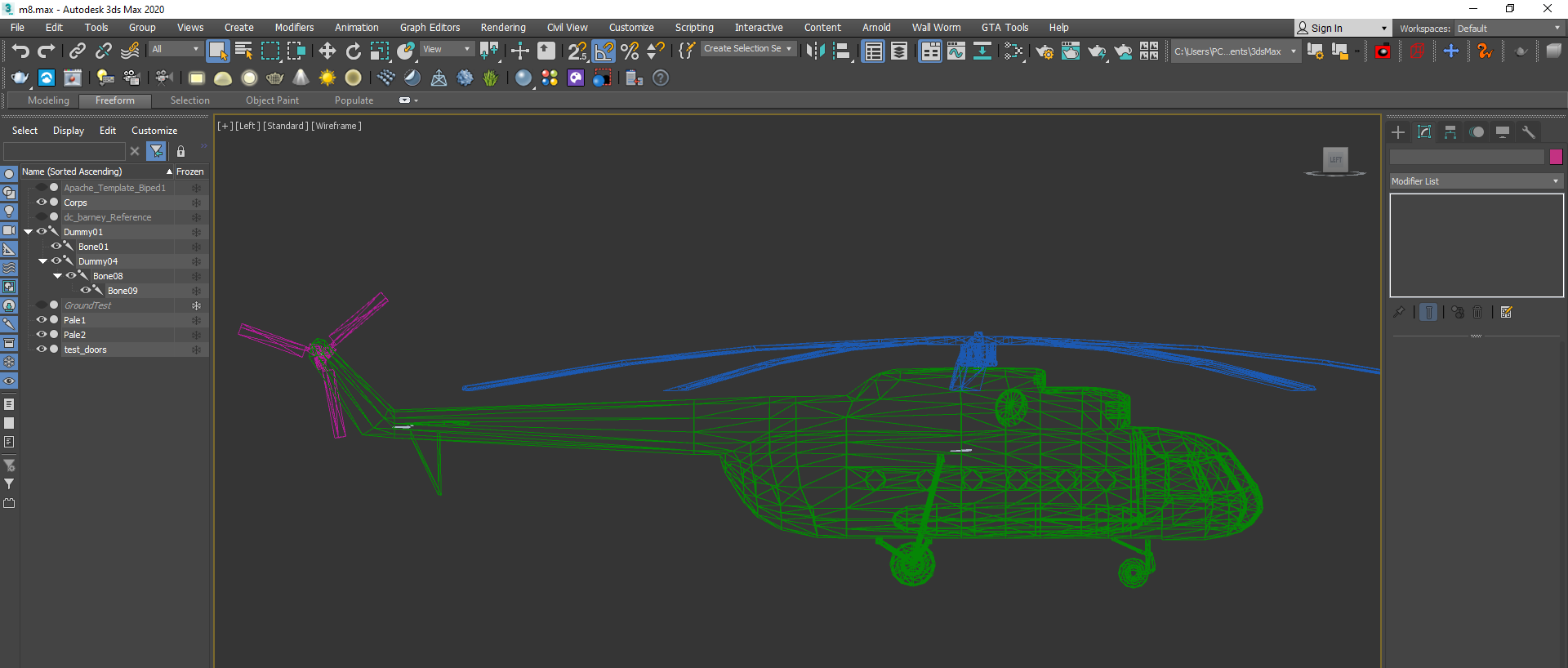 Использовал кости от оригинального вертолета из хл, вставил их в модельку своего вертолета, построил модель, и положение вертолета поломалось(на картинке ниже), но не менял положение хитбоксов, может как раз таки дело из-за положение хитбоксов