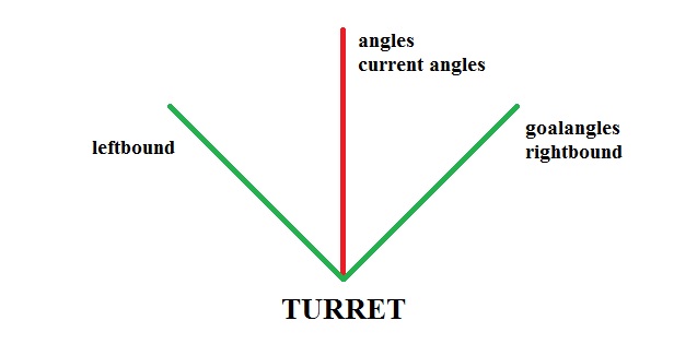 Здравствуйте. Делаю турели как tf2 (sentry gun). Не получается сделать поворот турели при поиске цели, от (50 до -50). При дебаге выводит некорректные данные.