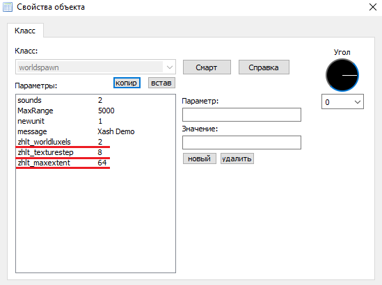 И снова очередной глупый вопрос, на который я нигде не нашёл ответа. На демо-карте ксаша в свойствах карты есть три параметра: zhlt_worldluxels, zhlt_texturestep и zhlt_maxextent. Я так понимаю, они служат для оптимизации текстур, даже удалось поиграться с ними, но спецификацию я так до конца и не понял. Никакой информации о них я не нашёл ни в гугле, ни в документациях. Посему вопрос: для чего они нужны и как правильно ими пользоваться? И есть ли ещё подобные параметры? Скрин прилагаю.