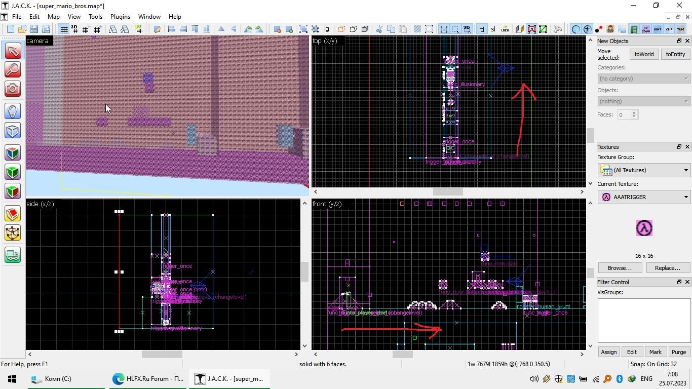 в платформерах на восток при виде сбоку, а не сверху. Если лепить платформер, т.е. уровень можно без проблем строить снизу вверх при виде сверху, ведь для вида сбоку используется другое окно (правда тогда side и front попутаны в названиях окон)