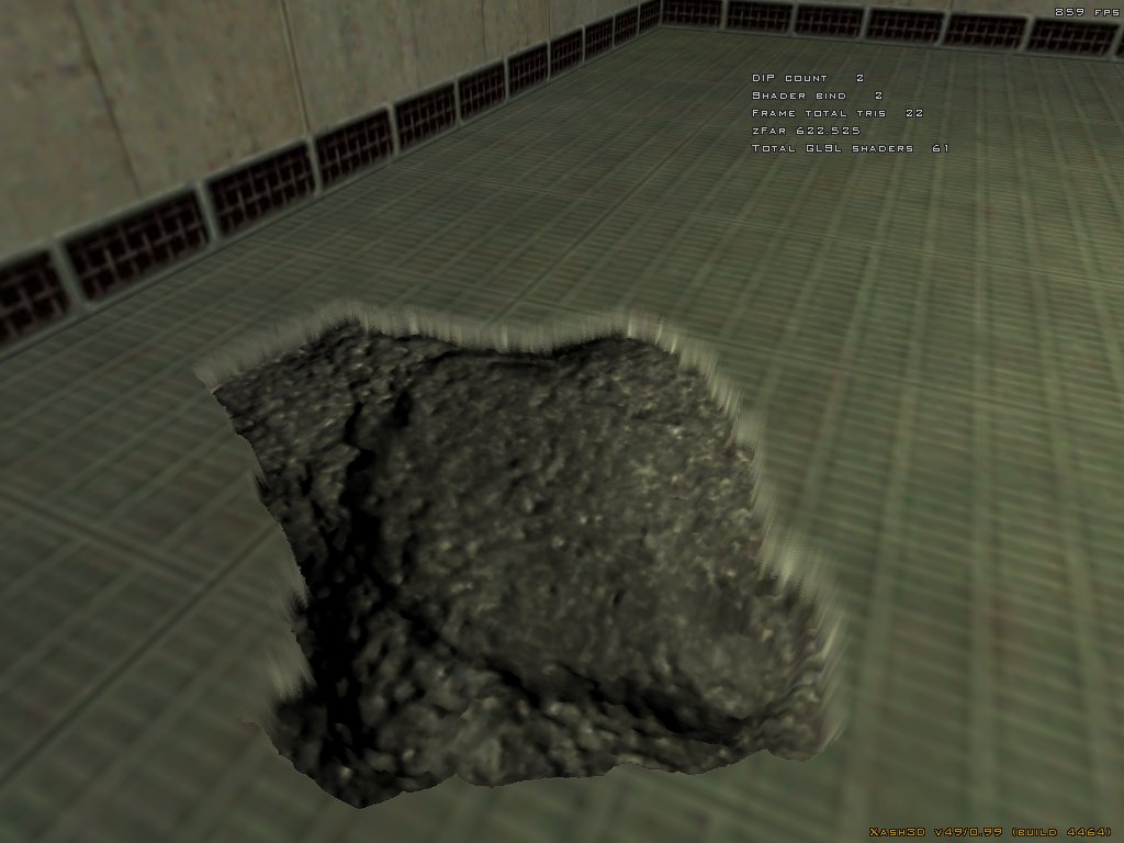 Во первых нужна поддержка декалей с альфа-каналом. Декали с серой базой ВСЕГДА полупрозрачны, они как бы "вьедаются" в цвет поверхности на которой находятся. У них есть плюс - их не надо освещать отдельно, за счёт такого режима блендинга освещение получается как бы автоматически. Ну по сути они блендятся в том же режиме что и детальные текстуры. Так что поддержка декалей с альфа-каналом нужна. Но к ним надо дополнительно написать код освещения от динамических источников.