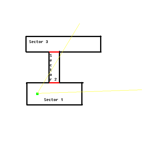 В той же кваке виз работал иначе. Там угол обзора брался равным 180 градусов, т.е. из первого сектора третий было видно ВСЕГДА.