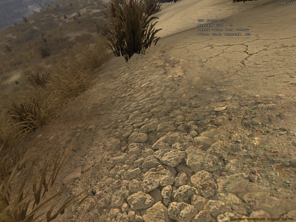 Вот скрин сделал, для наглядности, пришлось отключить глобальную деталку и освещение. Вот здесь чёткая и в то же время размытая граница между слоями. В принципе, я в своё время об этом умолчал, но в параное хейтмапа немного блуррится, поэтому сверхчёткой границы быть не может. Но навряд ли она вообще нужна.