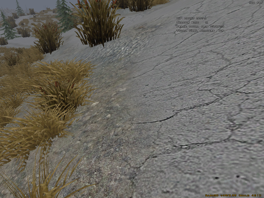 Я мог бы заморочиться с более мелкой тесселяцией, но смысла особо не вижу из-за самого принципа наложения повертексного террейна. А принцип этот очень простой - на каждом треугольнике не может быть более двух слоёв, а вертекс-альфа это фактор блендинга между двумя слоями. В параное-то террайн можно натянуть на два гигантских треугольника, размером 8192х8192. И нарисовать на них что угодно. А повертексное ложится именно на всякую геометрию с перепадами, т.к. там в любом случае много треугольников. Разумеется и гигантскую плоскость можно тесселировать, но это приведёт лишь к тормозам. И всё равно качества попиксельного смешивания получить не удасться.