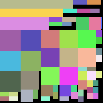 Например, генерировал 3000 прямоугольников 2х2-72х72, сортировал их и упаковывал в атлас 2048х2048. Кармаковский алгоритм упаковывал 2000 и говорил "всё, дальше совать некуда". А алгоритм уголком упаковывал 2300.