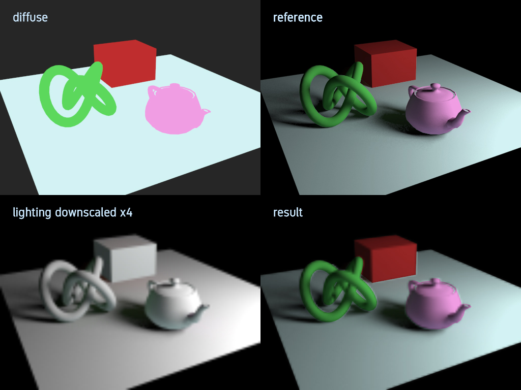 Кстати насчёт освещения мне пришла в голову мысль, рисовать его в кратно уменьшенную текстуру, ну скажем 320х200. Это всего-навсего 64 тыщи пикселей.