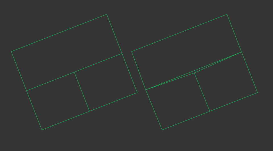 Дядя Миша вместе плавают вершины. Вершина с ребром вместе не плавают. Было у тебя как слева. Вершины немного поплыли, и ребро убежало. Когда есть тжинк, он эту дырку прикрывает (потому что его вершины плавают вместе с остальными).
