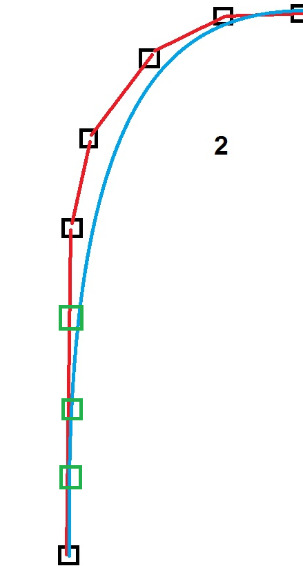 просто рантайм добавь или бейкни больше точек и примени ту же дефолтную интерполяцию, пометил зеленым нужные точки и будет гладко.