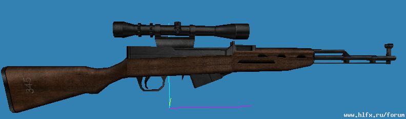 Это последняя моя моделька, карабин скс 45-го года, в качестве временной текстуры наложены тексы из модельки свд. Эту модель потом доделает другой человек (текстуры+анимация).