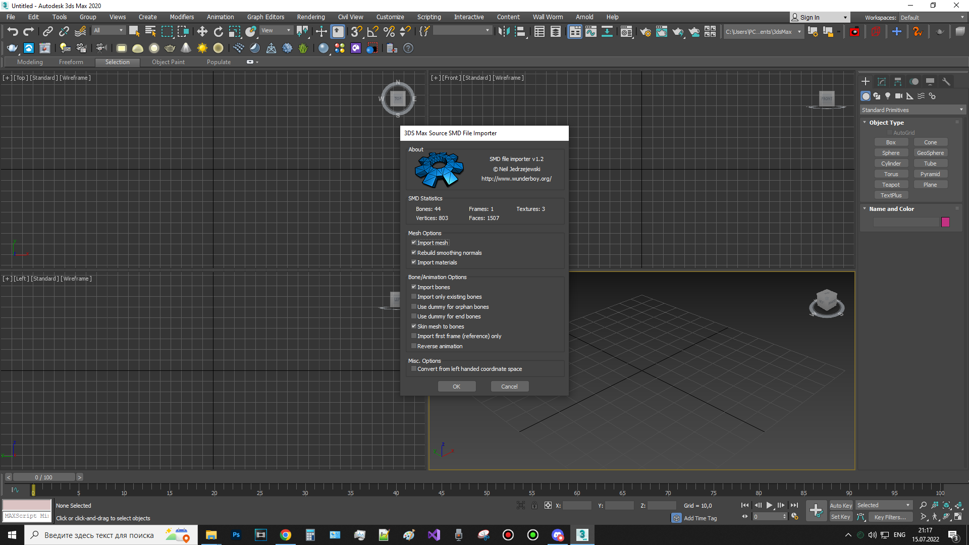 Проблема с импортом смд моделей из хл1/модов в 3д макс.