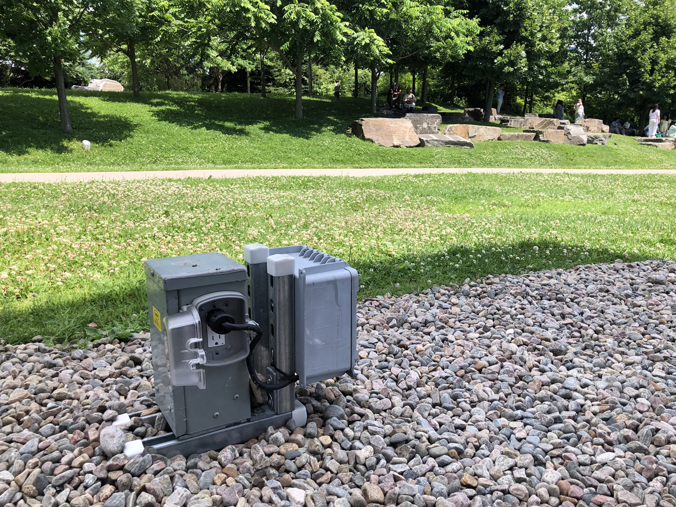 Специально для Дяди Миши - сфоткал, как выглядят розетки на улице в Торонто. В данном случае - это розетки в одном из городских парков. Подключена какая-то местная аппаратура, но есть и свободная дырка в свитче розетка для чьего-нибудь ноутбука. Даже пластиковая крышечка имеется, для защиты от непогоды!