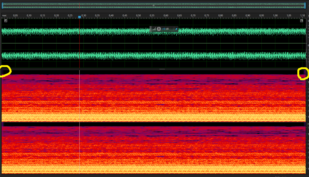 Никак не могу избавиться в зацикленных звуках от треска при их повторном проигрывании. Как я понимаю, проблема где-то здесь (обведено жёлтым). Кто подскажет, как от этого грамотно избавиться?