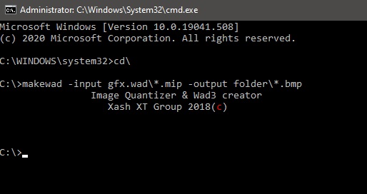 В командной строке пишу - "D:\All for mod\MakeWAD\makewad.exe" -input D:\All for mod\MakeWAD\*.bmp -output D:\P2Savior\base\p2r.wad и ничего не происходит.