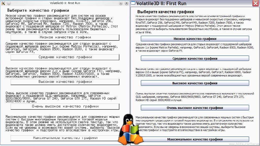 В итоге окна в линуксе выглядят почти так же, как в Windows. Поддержка русского языка реализована путем перекодирования текста виджетов cp1521 -> koi8-r (шрифты koi8-r есть почти у всех, как я понимаю?), т.к. все игровые тексты находятся в cp1251. Я, правда, не уверен, у всех ли есть koi8-r-шрифты нужного размера, ну это покажет тестирование.