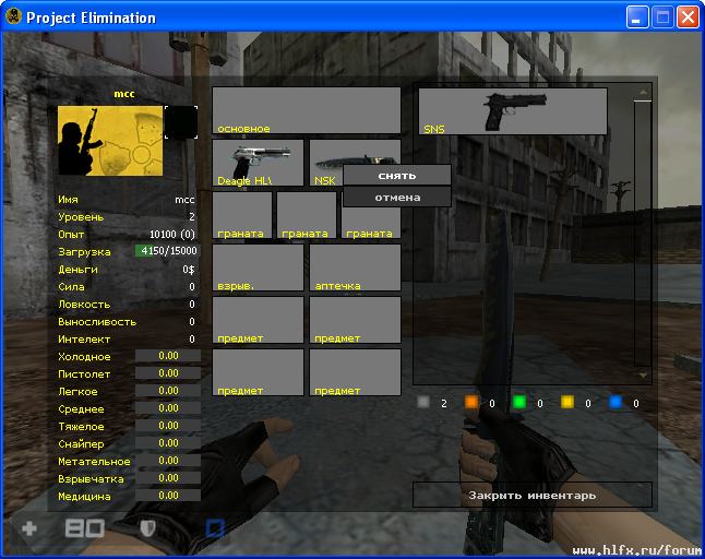 снизу скрин инвентаря, там косячек пистолет sns должен пол слота занимать)