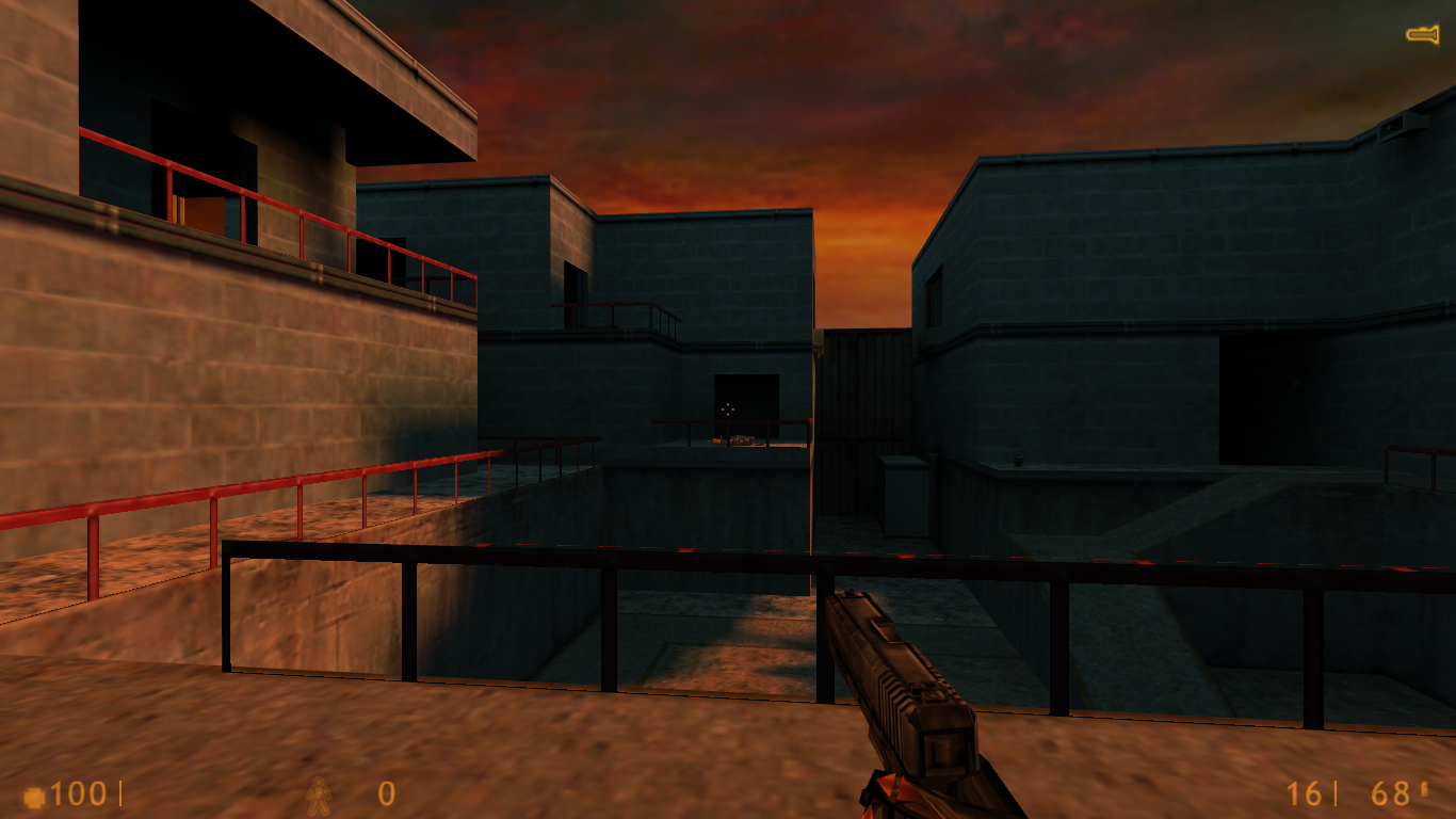 я пока не успел сделать более менее универсальный мануал, поэтому это не всегда сработает, слишком идивидуально. В основном это связано с тем, что в хл2 яркие овербрайты, они сильно влияют на картинку (хотелось бы их в хлраде). В хл2-картах обычно несколько солнц (я так понимаю из-за компиляции выделенных пространств), они иногда чуть отличаются, но в принципе любое можно брать и просто копировать на карту. Далее у солнца параметр _ambient переименовываем в _diffuse_light (vhlt его поддерживает). Нигде яркость лампочек и солнца я не менял, при компиляции использовал параметр -dscale 0.002 для их уменьшения. Далее самая фишка в параметре -fast либо без этого параметра, но с -bounce 0, это одно и тоже (кирпичность убираем -blur 5, при -fast - не работает). Т.е. отключаем отражения солнца, тени становятся совсем тёмные, а благодаря -gamma 0.7 вырваниваем гамму, незатенённые участки становятся яркими (недоовербрайт). Ну и очень важная фишка - цвет солнца и _diffuse_light прямо берутся из скайбокса (два контрастных цвета - небо и солнце)